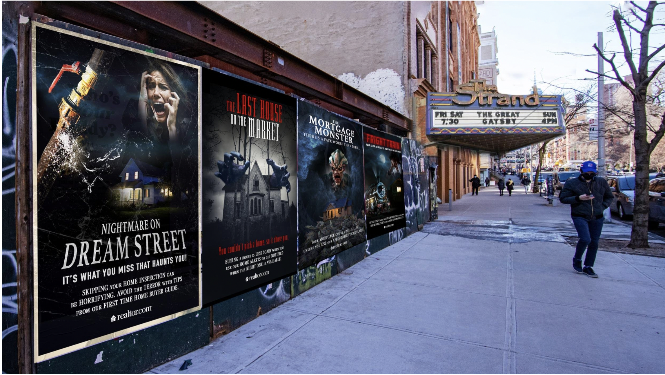 Leading up to Halloween, we created a series of home-buying horror movie posters where the film’s title, tagline, and credits served as advice on how to avoid finding yourself in a home-buying horror movie of your own making with the help of Realtor.com.